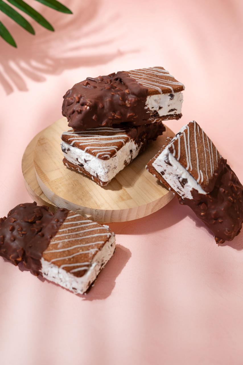 Creamy vanilla-style keto ice cream is layered between soft, chocolate-style cookies, all dipped in a thick coating of sugar-free chocolate. It’s bold. It’s addictive. And it’s diabetic-friendly.