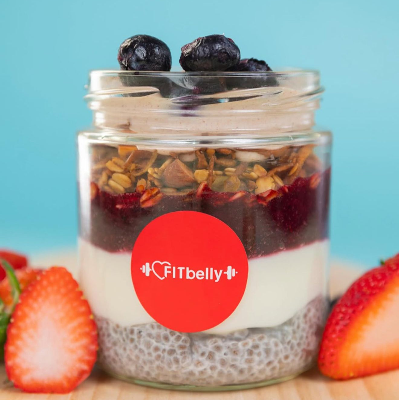 FitBelly’s Red Berry Parfait combines protein-rich Greek yogurt, chia pudding, antioxidant-packed strawberries and blueberries, and our signature 100% natural FITBelly granola for a satisfying, balanced treat. Naturally sweetened with stevia and crafted with zero added sugar, it’s the ultimate guilt-free parfait.
